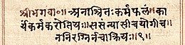 The Bhagavad Gita manuscripts exist in numerous Indic scripts. [89] These include writing systems that are currently in use, as well as early scripts such as the Sharada script now dormant. [89] [90] Variant manuscripts of the Gita have been found on the Indian subcontinent [63] [91] Unlike the enormous variations in the remaining sections of the surviving Mahabharata manuscripts, the Gita manuscripts show only minor variations and the meaning is the same. [63] [91]